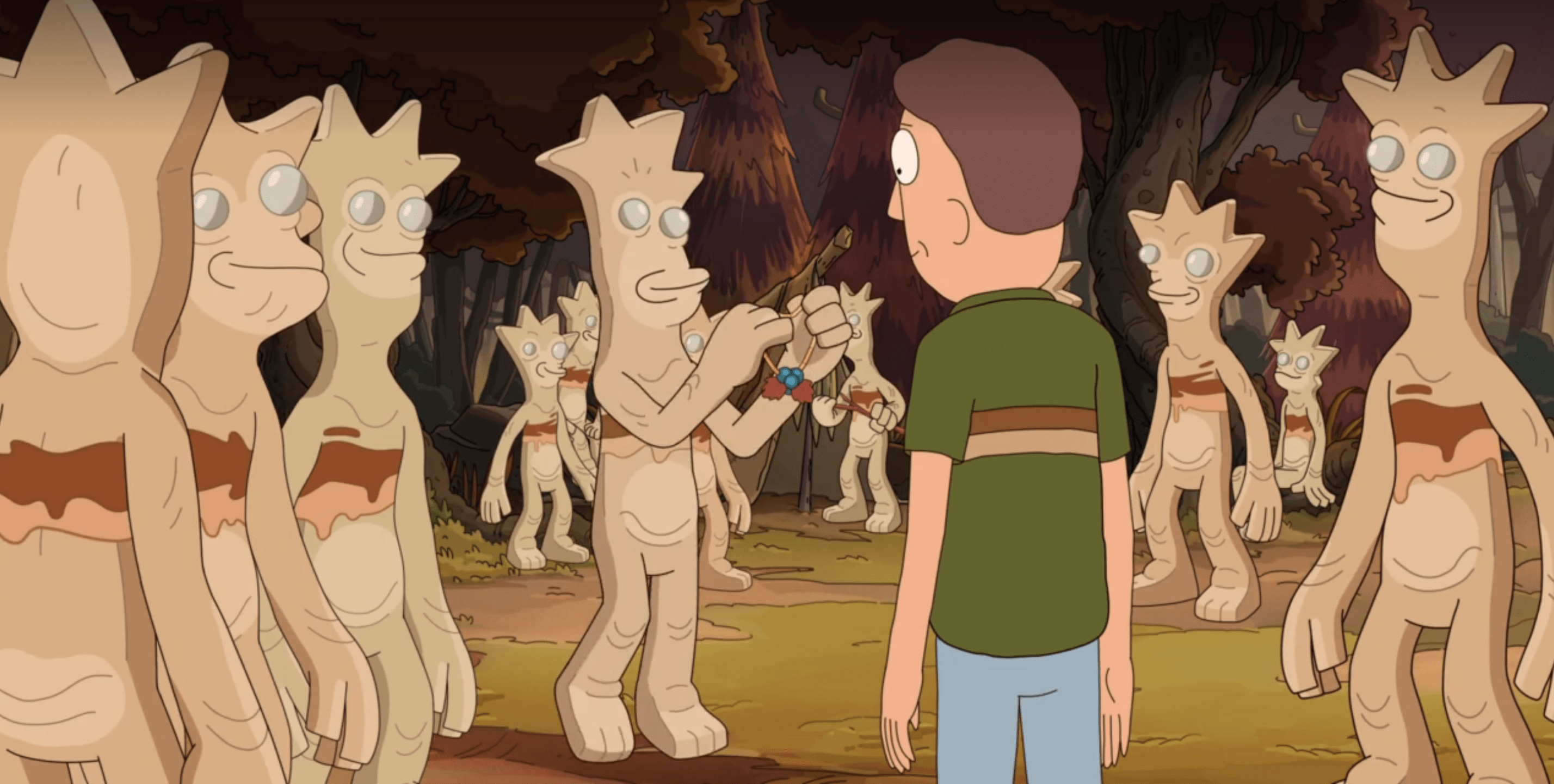 Even though Rick and Morty makes a point to clown on time travel as a common sci-fi trope, “Rattlestar Ricklactica” comes close with how it plays with themes from Terminator, except with snakes. A play on Battlestar Galactica, while the episode’s main plot revolves around Rick and Morty trying to revert a snake society back to normal after Morty brings an alien snake to their home planet, the subplot focuses on Jerry trying to handle an issue himself when Rick makes him slightly lighter than air so he can hang Christmas decorations. The underlying story in Rick and Morty’s adventure is how much Rick antagonizes Morty to prove a point, which would go on to become an even greater plot device in future episodes. —Jordan Rose