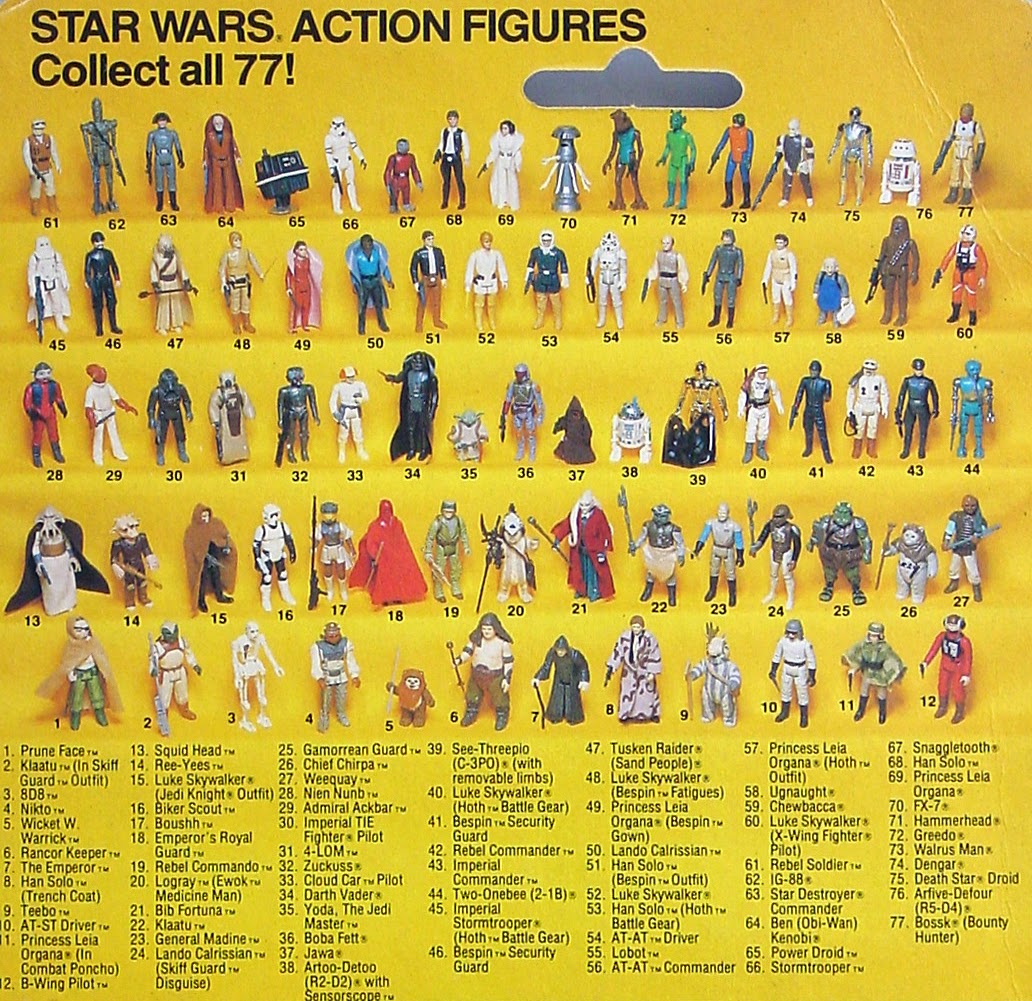 The vintage Star Wars toys are limited to right below hundred figures of similarly styled figures. It's manageable, and it makes for a delight to display a complete collection. Try that with your 562 modern Star Wars figures.