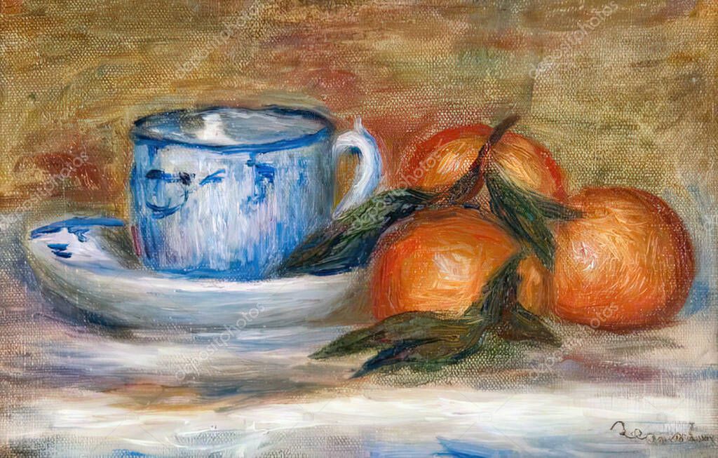 Auguste Renoir, Flowers (Fleurs) is an oil painting on Canvas 1885 - by French painter and Artist Pierre-Auguste Renoir (18411919). — Illustration