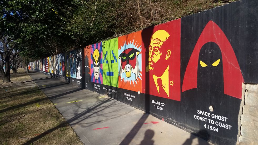 Such an amazing experience to behold in person, because each of these painted murals all mean something to me personally as a young teenager. It's because of Adult Swim that I became the anime fan I am today, and I owe this block personal thanks for that influence. If you grew up with this late night block in any capacity, you owe it to yourself to see this historical part of Atlanta. It's places like this that exist to show that television will always rule, and there is pure goodness in that idea all these years later, to be that impactful to me to this day.