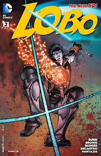 I know that this new sexy-time Lobo hasn't been a favorite of fanboys , but I'm taking the high road and giving it a couple issues before I give up on him. I have to admit, I don't have a long history with Lobo and maybe that's why I didn't mind last month's series premier. It wasn't as fun as I'd hoped but the mix of flashbacks and bounty hunter story had me intrigued. That's a good thing because we get just that again this month. Plus, with some new additions, the fun I was hoping for is beginning as well.