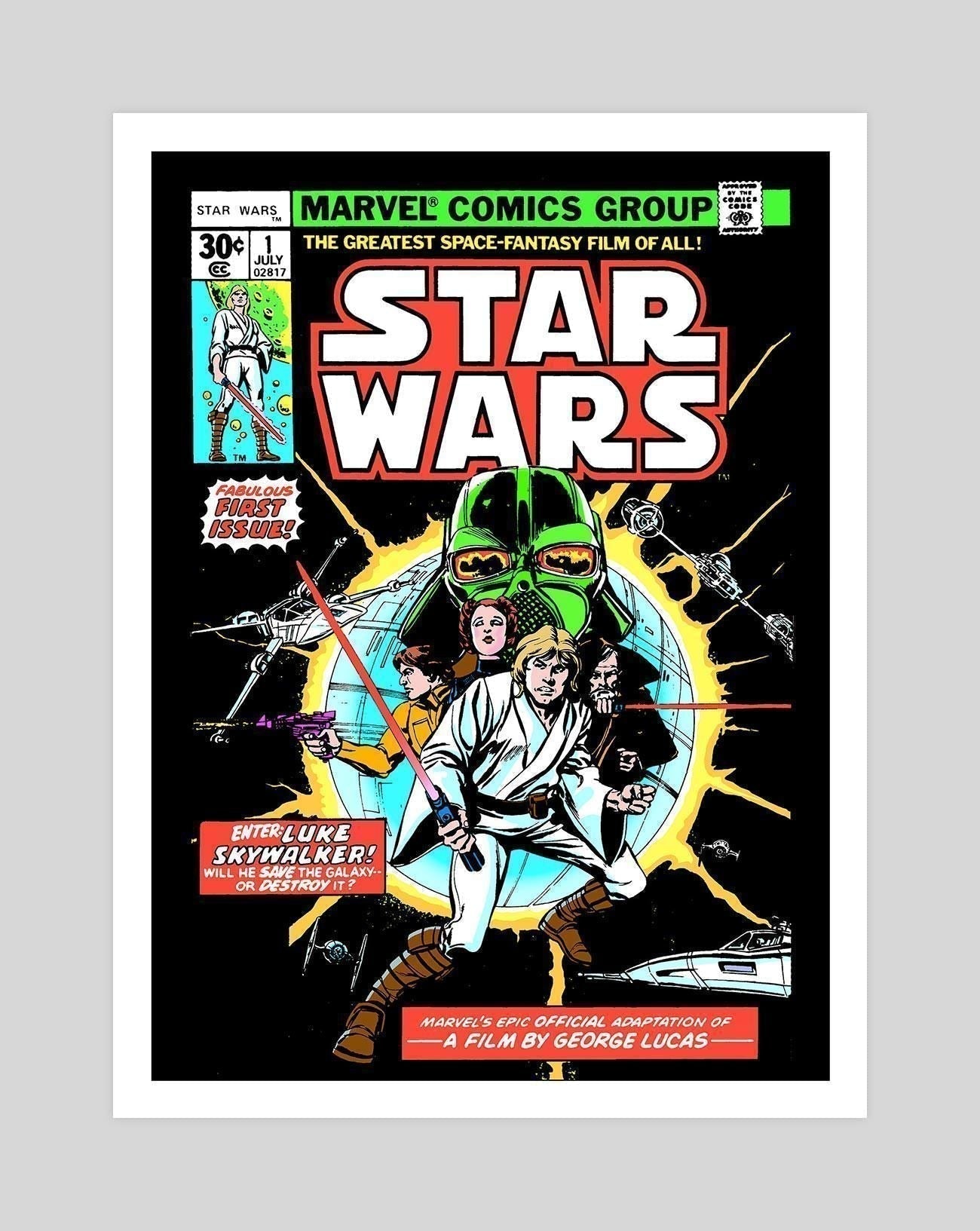 A long time ago, in a galaxy far, far away...We are very excited to present this officially licensed Marvel Comics cover art print of the 1977 Star Wars No.1 Comic. This stunning premium quality giclee art print is the perfect gift for any die hard Star Wars fan! It has been produced on luxurious 100% cotton rag textured art paper using archival quality inks resulting in a superior print suitable for museum or gallery display.