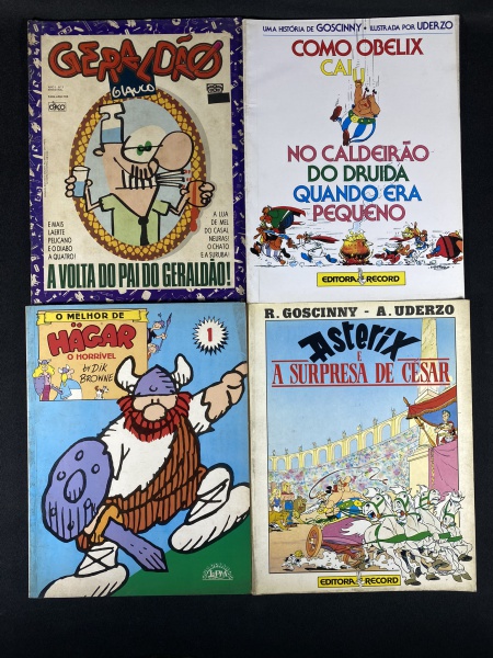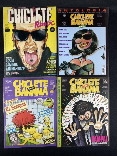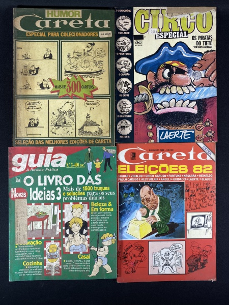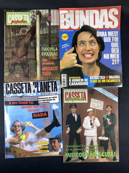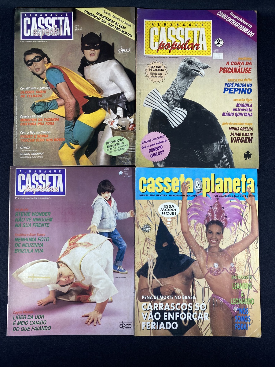 Revistas Casseta e Planeta, quatro unidades com marcas do tempo e de uso.