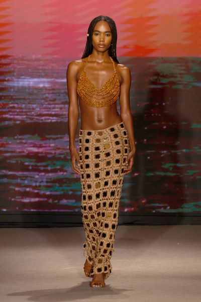 The latest hybrid trend in swimwear seems to be combining the wedding aesthetic with beach wear, as was done for Ema Savahl's couture collection in Miami this week.