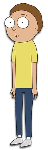 - Morty is a young teenage boy. He has short brown hair that he wears straight and neatly combed around his head. Morty's head is round and roughly in the shape and size of a circle, unlike many other characters in the show. He wears a yellow shirt, blue pants, and white shoes. He has a pronounced stutter (even when calm) and his voice constantly breaks due his effects of puberty. Notably, Morty doesn't have a visible neck.