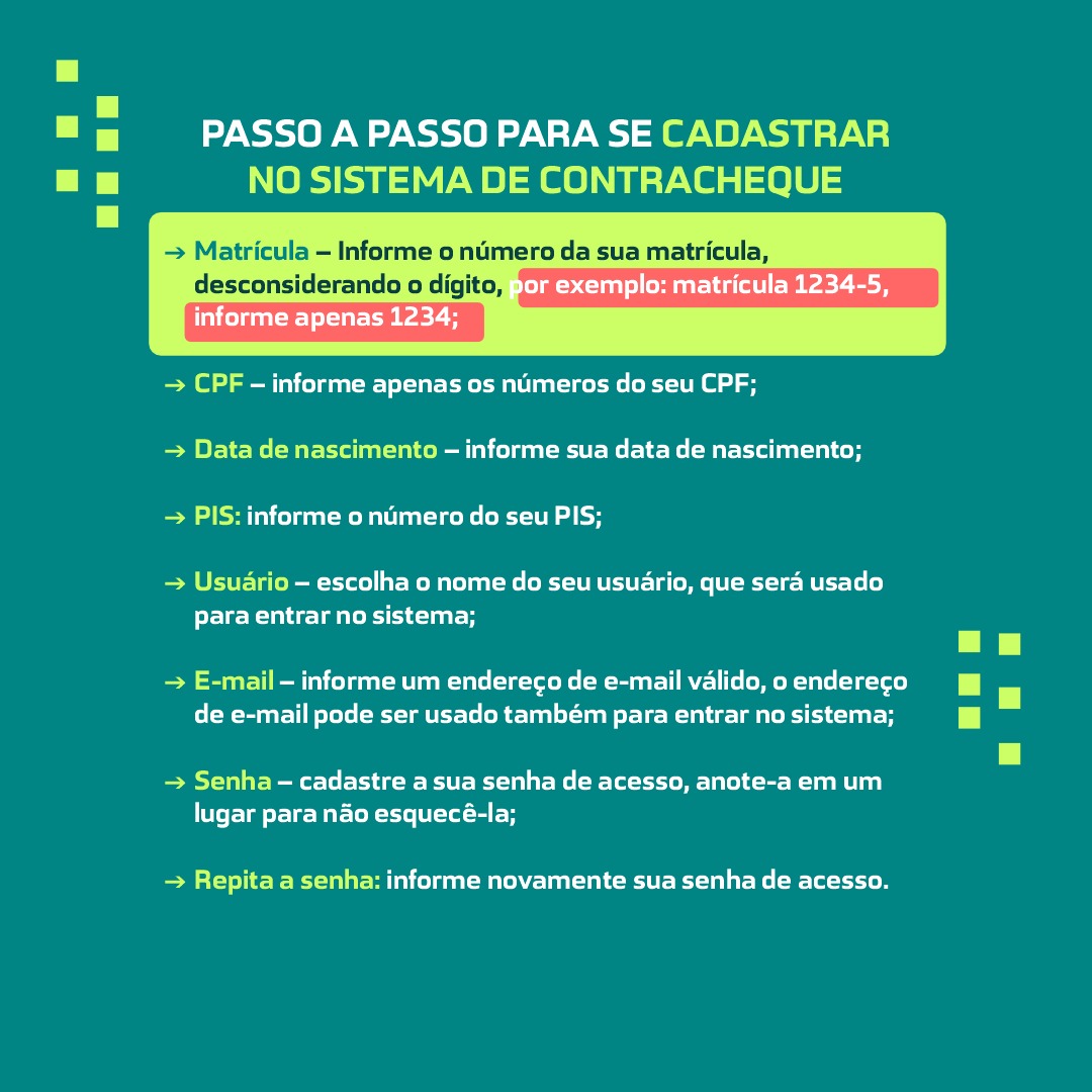 PASO A PASSO PARA SE CADASTRAR NO SISTEMA DE CONTRACHEQUE