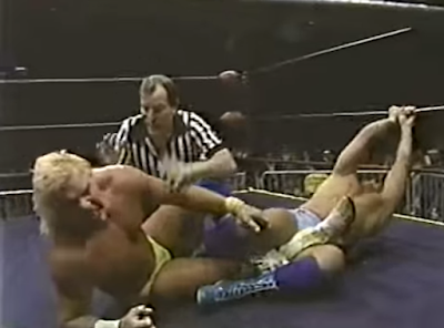 Quick confession: I've never seen the uncut 35-minute version of this match. The VHS version of this two-night event was hacked to ribbons (as were many Turner Home Video releases), and thus far the WWE Network hasn't released uncut versions of the three Crockett Cup tournaments (Get on it Vince!). Thus the only version of this match I've been able to view was abridged to 16 minutes, but I'll be goddamned if it isn't one of the best matches of 1987, even in this form. Flair-Windham was a spectacular feud and this is their greatest match together that I've seen. Flair has always said Windham was one of the few opponents that could keep up with him hold-for-hold and cardio-wise, and it's a shame Barry didn't have the drive his colleague did or he'd have been a cornerstone of the NWA for years. If anyone knows where I can find the 35-minute version, please comment below!