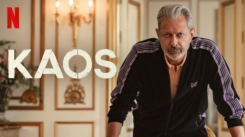 In KAOS, Zeus (Jeff Goldblum) is equal parts egomaniacal and paranoid — a combustive combination that spells danger for the mortals over whom he intends to assert dominance. Don’t let the charming smile and chic leisure wear fool you — just a glimpse of the KAOS teaser hints at the powerful but insecure “king of the goddamn gods” (his words). That complex swirl of traits is what drew Goldblum to the role. He told Netflix: “Our Zeus is the three c’s — complicated, charismatic, [and] cruel. As well as several other letters.”