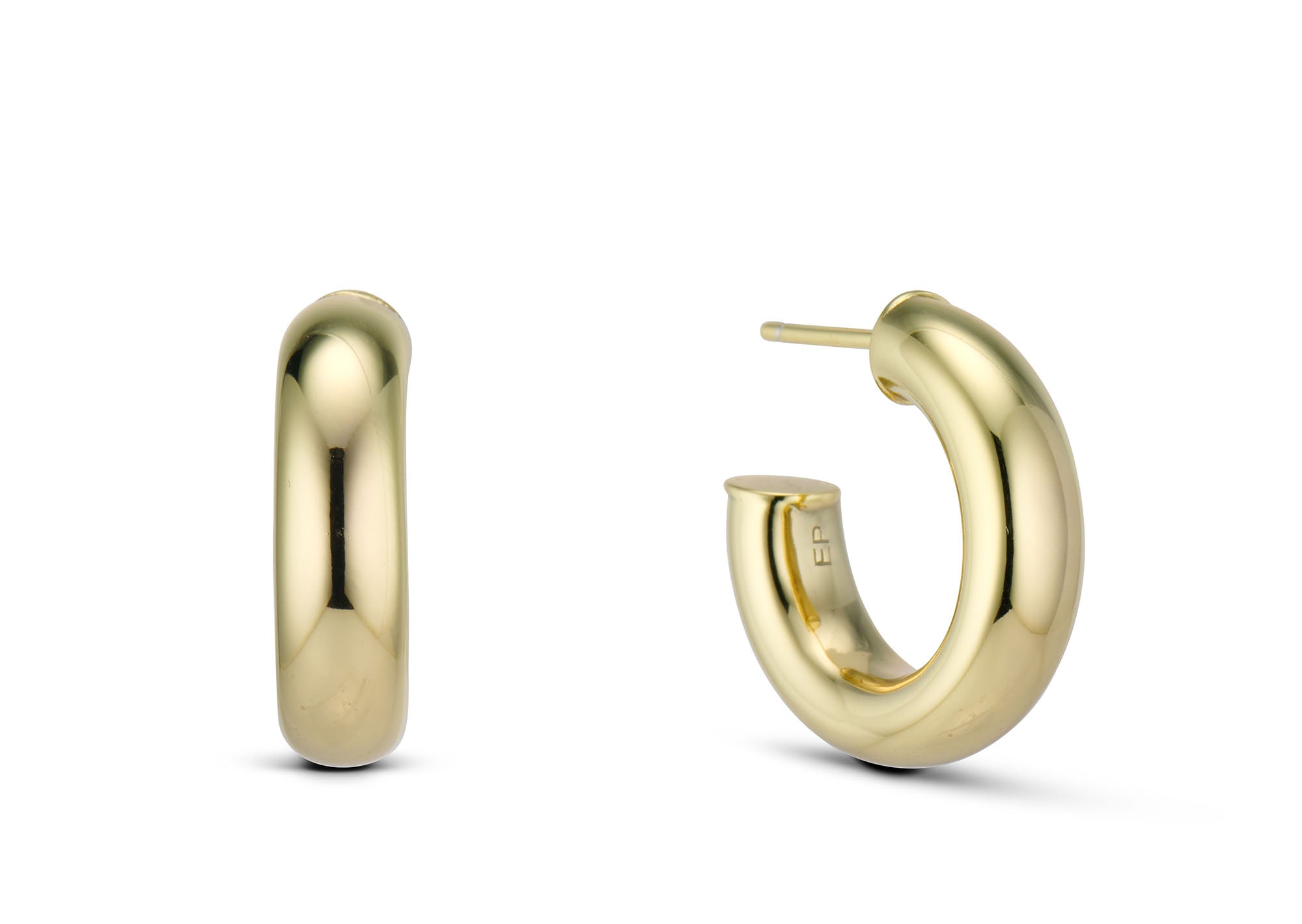 The Gold Chunky Hoop Earring in sterling silver with 14k gold plating is a bold and glamorous, and light weight accessory. These epjewels.com hoop earrings available in small, medium or large feature a chunky design, adding a statement-making touch to any outfit. The shiny gold finish gives them a luxurious and eye-catching appeal. Made from sterling silver with 14k gold plating, these earrings offer both durability and a high-quality finish. They are versatile enough to be worn for both casual and formal occasions, adding a touch of elegance and sophistication to your look. Whether you want to elevate your everyday style or make a statement at a special event, the shiny gold chunky hoop earrings are a classic choice.