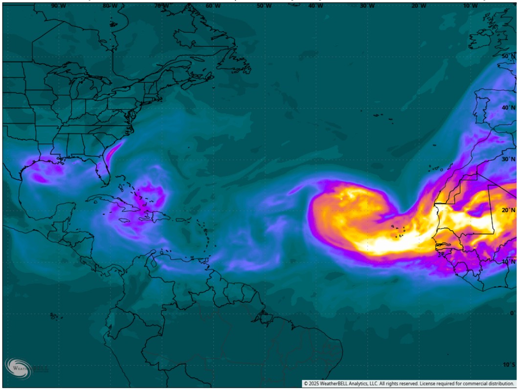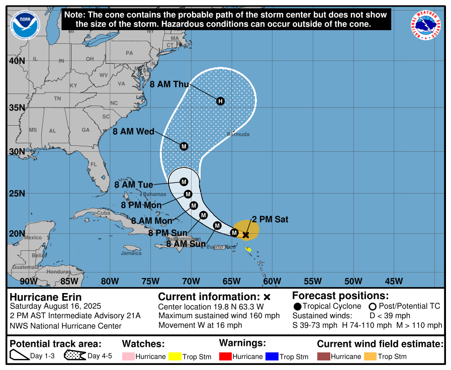 While a Gulf disturbance that moved into Texas on Friday seems to have run its course, Hurricane Erin in the western Atlantic intensifies.