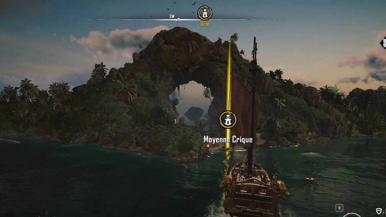 Explore the Moyenne Cirque outpost in Skull and Bones for precious blueprints, and uncover a buried chest on this small island.
