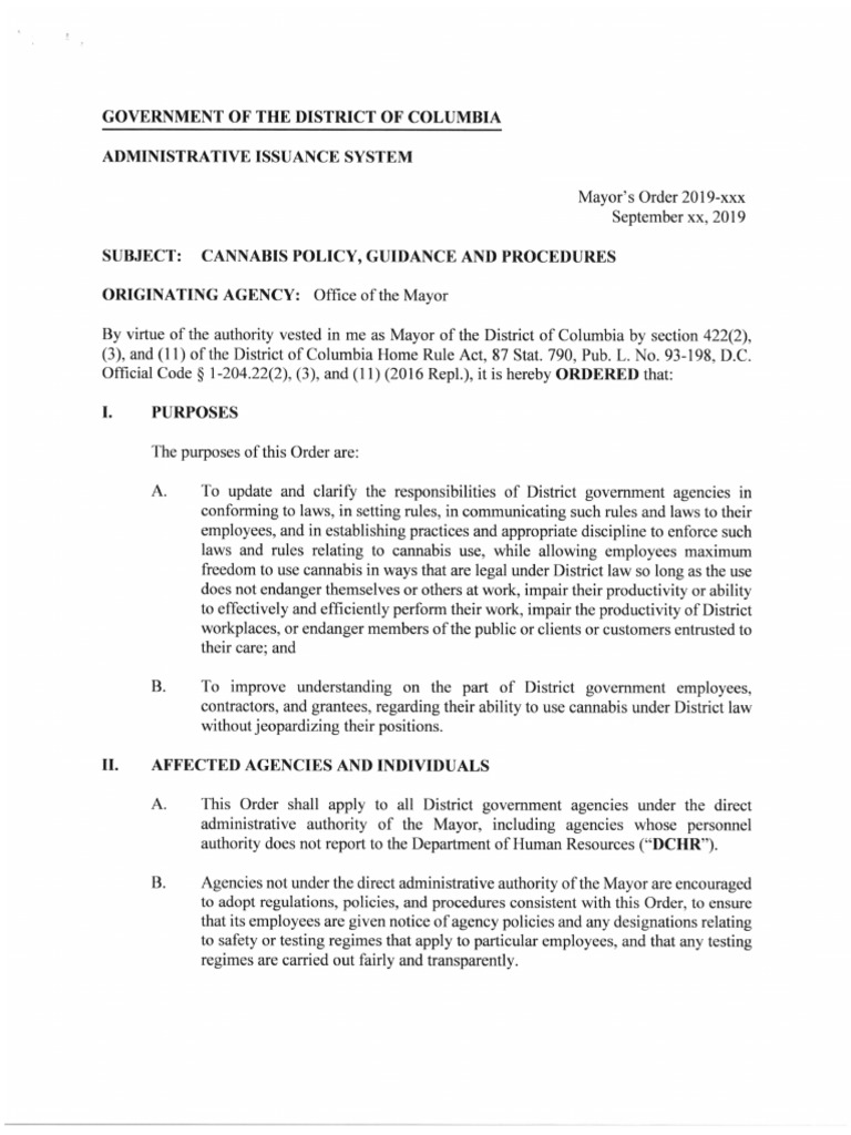 Mayoral Order About Cannabis Policy - Free download as PDF File (.pdf) or read online for free. From Mayor Bowser