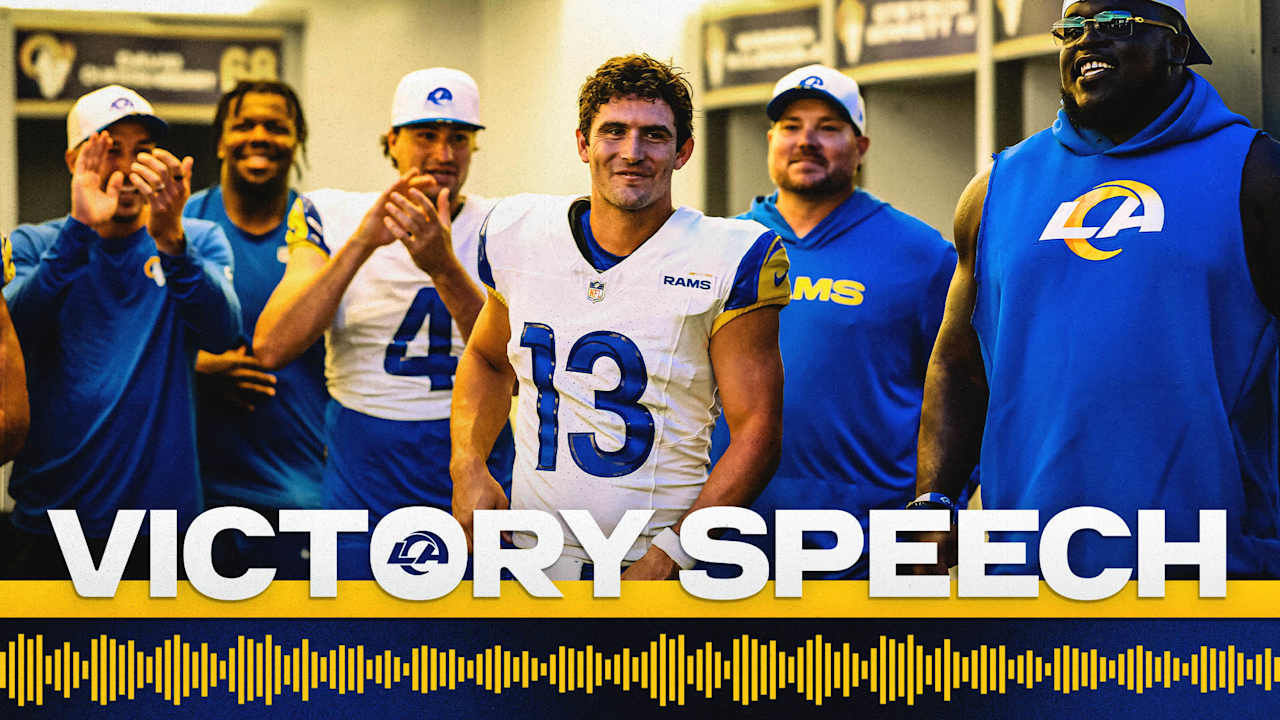 Watch as Los Angeles Rams assistant head coach Aubrey Pleasant gives the game "ball" to quarterback Stetson Bennett IV after Saturday