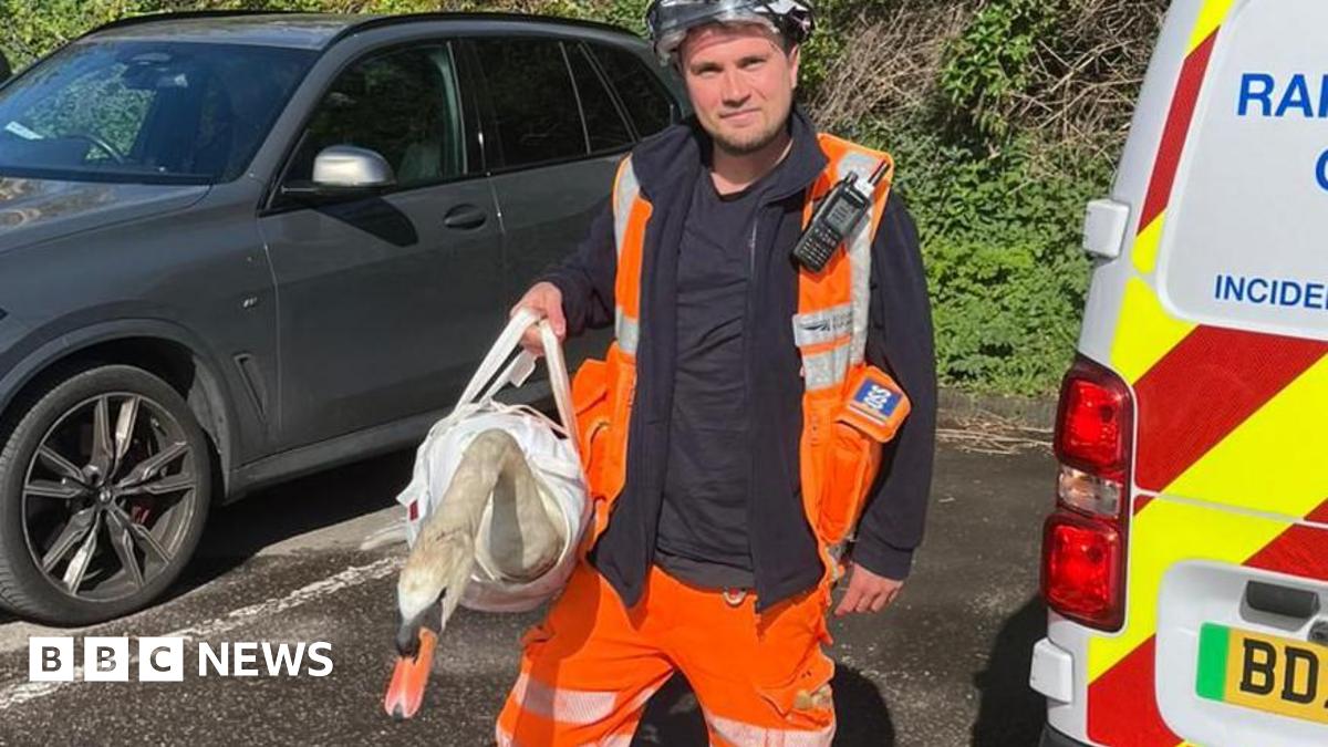 The swan may need surgery to repair its broken wing and injured leg, specialist vets said.