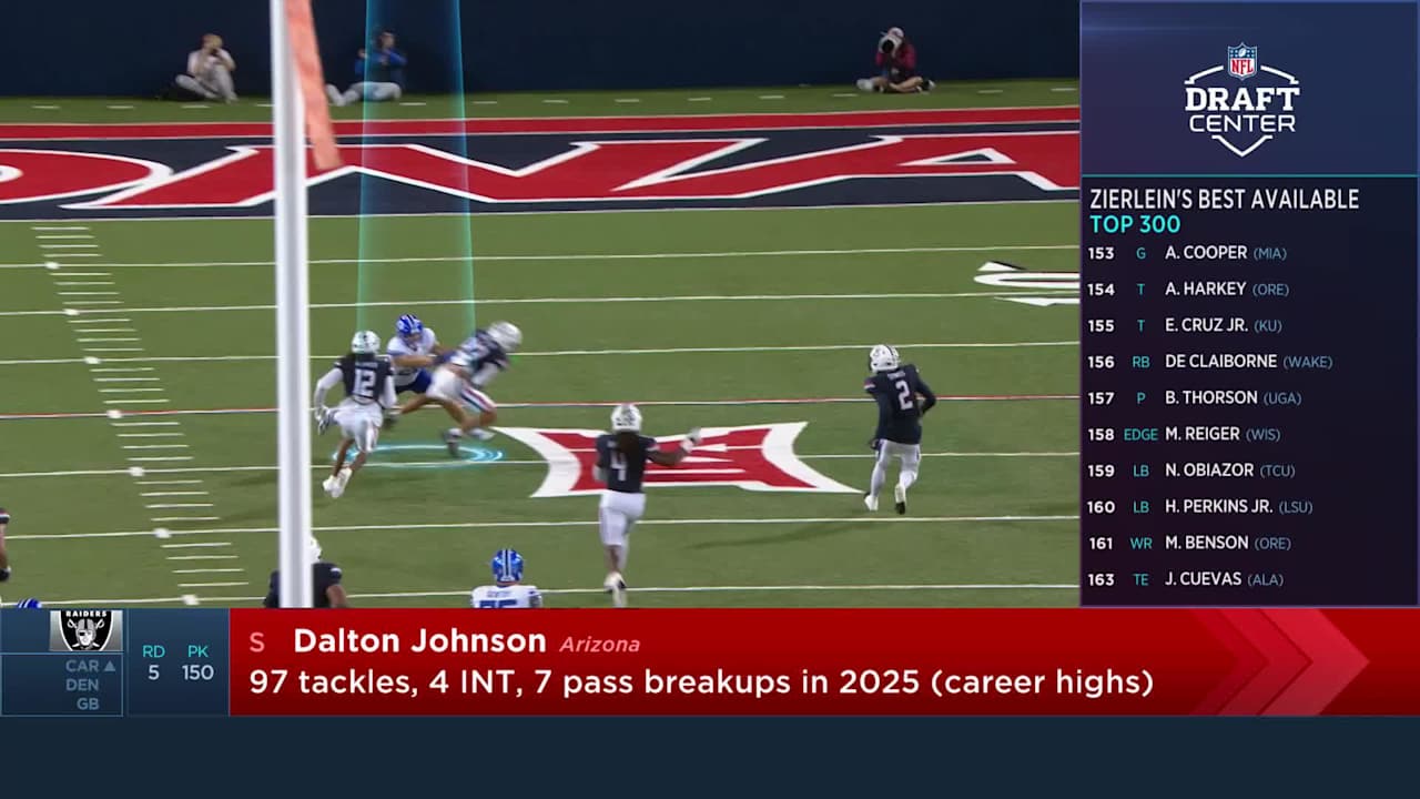 The Las Vegas Raiders select Arizona Wildcats safety Dalton Johnson in Round 5 of the 2026 NFL Draft with the No. 150 overall pick (via a trade with t