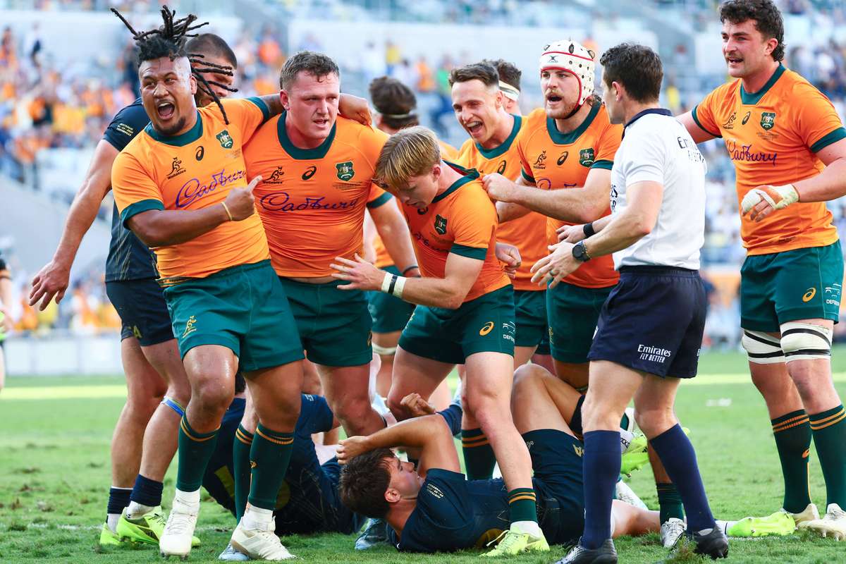 Angus Bell scored the winning try six minutes after the final hooter as Australia overturned a 14-point half-time deficit to beat Argentina 28-24, in