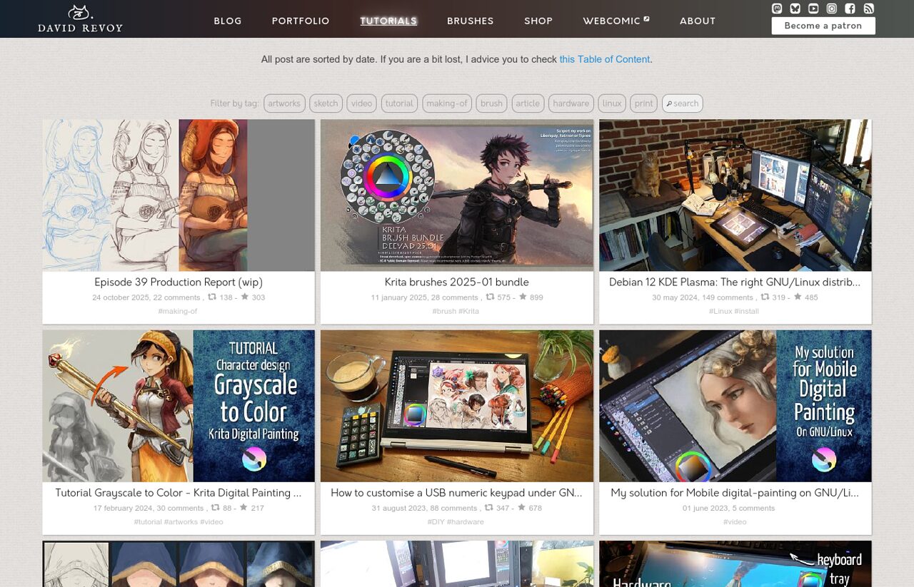 Website of David Revoy, artist and instructor using only Free/Libre and Open-Source software since 2009.