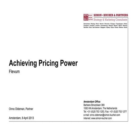 This document discusses achieving pricing power and summarizes Simon-Kucher & Partners, a global strategy consulting firm focused on marketing, pricin