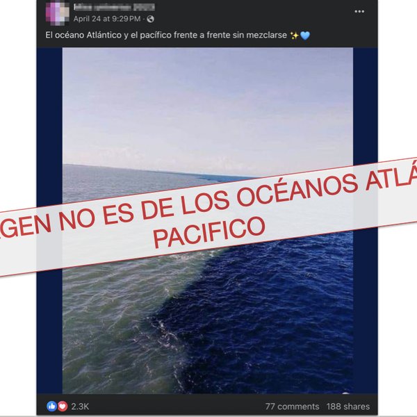 Una publicación en Facebook dice mostrar los océanos Atlántico y Pacífico sin mezclarse, con una división de sus aguas d