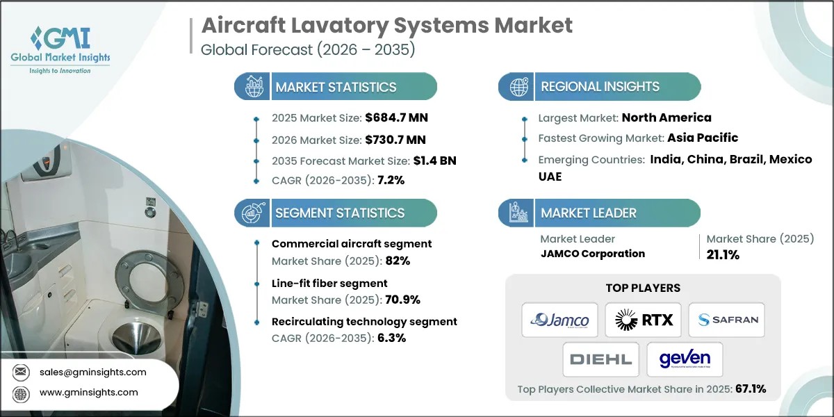 The aircraft lavatory systems market size exceeded USD 684.7 million in 2025 and is expected to grow at a CAGR of 7.2% from 2026 to 2035, driven by gr