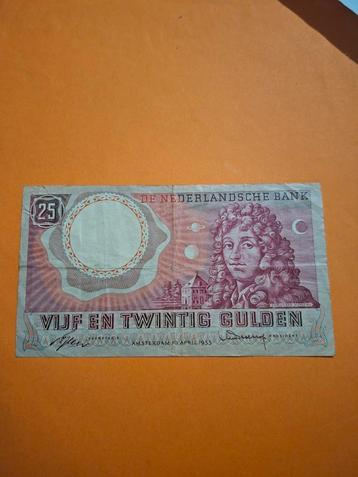 25 gulden 1955 Christaan Huygens uit 1955 in ZFSerie nummer 3 RA 093800PL68bCataloguswaarde €25U krijgt het biljet wat u ziet op de