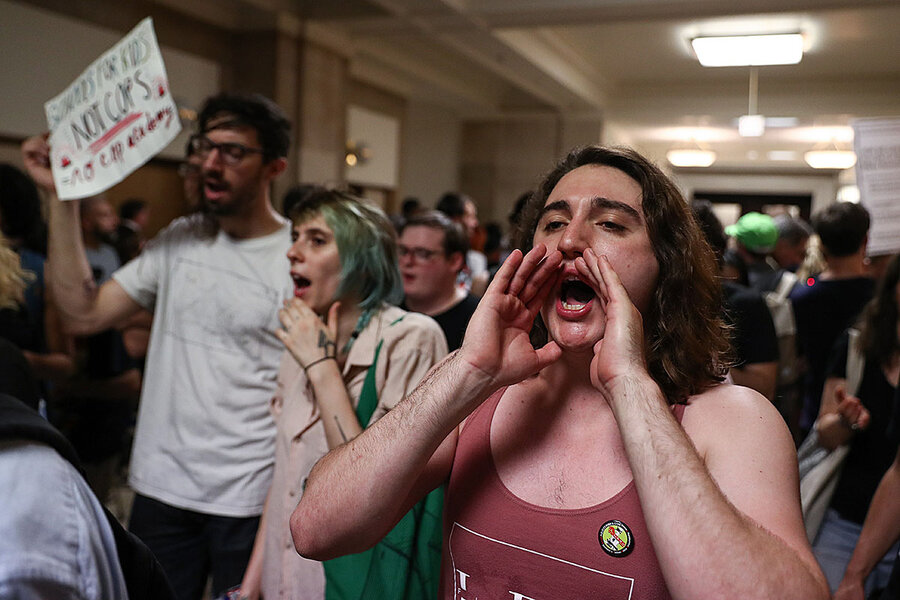 Protestors from the #NoCopAcademy campaign made public comments at a Chicago city council meeting before staging a sit-in at city hall.