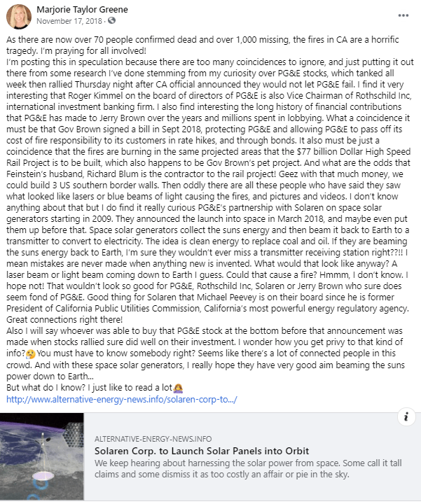 Twitter users mocked the Representative for Georgia after an old Facebook post emerged in which she peddled baseless anti-Semitic conspiracy theories.