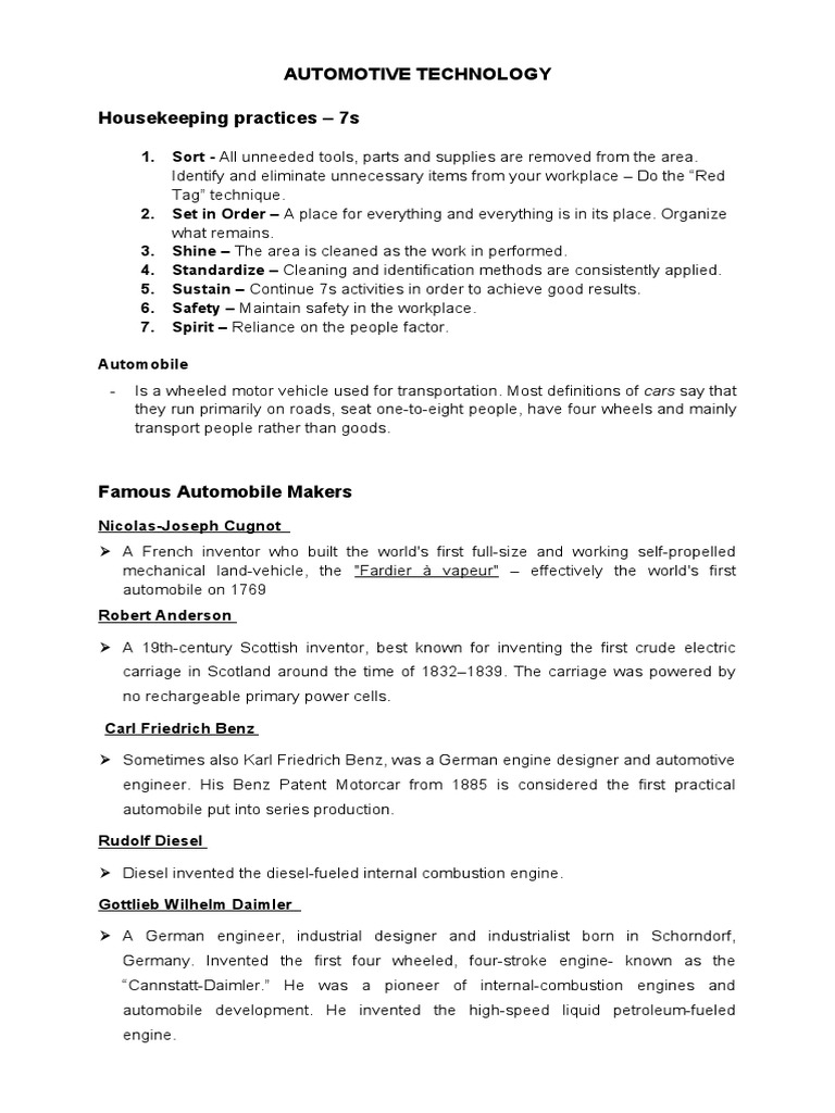 Automotive Technology Housekeeping Practices - 7s