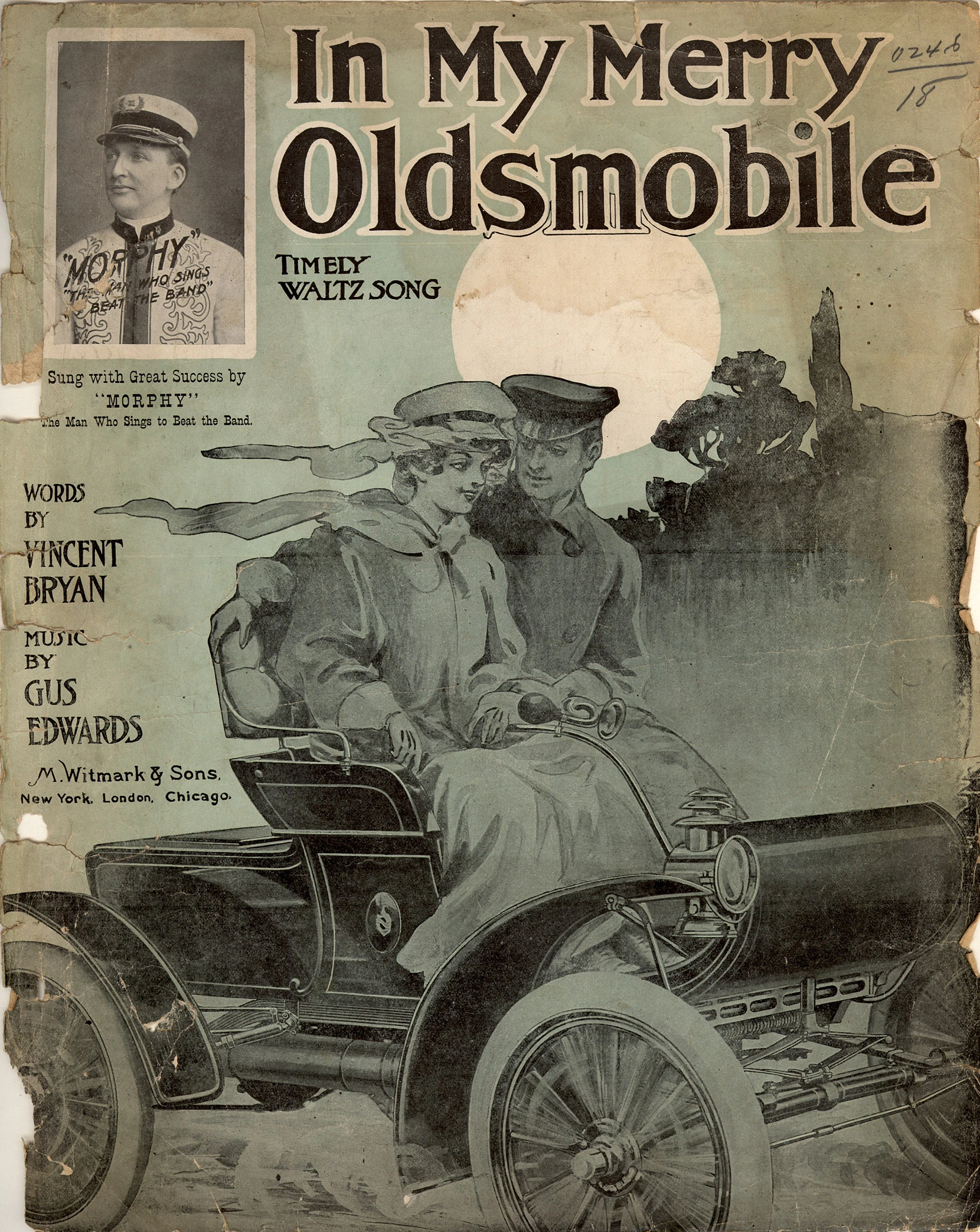 In My Merry Oldsmobile songbook featuring an Oldsmobile Curved Dash automobile (produced 1901-1907) and period driving clothing