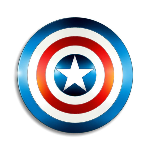 Captain America's shield is his primary weapon. The most well-known of his shields is a disc-shaped object with a five-pointed star design in its center, within blue, red, and white concentric circles. This shield is composed of a unique combination of Vibranium, steel alloy, and a third catalyst that has never been duplicated called Proto-Adamantium.[1] It is virtually indestructible.[2] It is as much an offensive weapon as a defensive one for Captain America.[3] Cap uses it against his enemies, mainly, by throwing it at them and can perform mind-bogglingly impossible tricks with it.