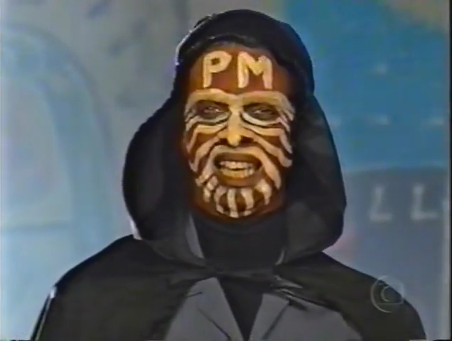 An obvious parody of Mister M, Mister PM is a police officer and self-proclaimed magician who dons the traditional Brazilian police attire as well as a black cape, wearing a face paint similar to that of Mister M's mask but with the "PM" letters on his forehead. He was also known for his trademark maniacal laugh.