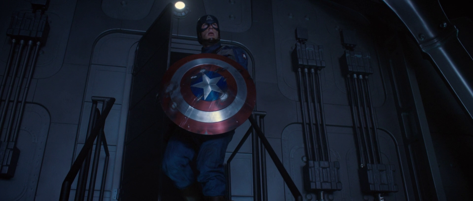 In 2011, the wreckage of the Valkyrie had been found by S.H.I.E.L.D., along with the frozen Captain America as well as his shield. Captain America was later recruited into the Avengers by Nick Fury, with his uniform being redesigned by Phil Coulson, and keeping to a similar theme to his shield and previous uniform. With the threat of Loki now upon them, Captain America was then ordered by Director Fury to travel with Black Widow to Germany, where Loki had been spotted, with Captain America then reclaiming his new uniform and shield for the mission.