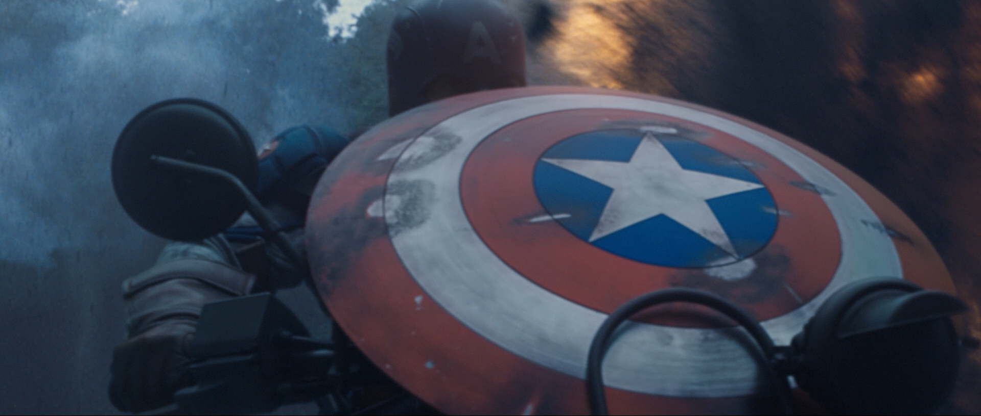 During Captain America's fight with Ultron in the Battle of Seoul, the shield got stuck in Ultron's body and Captain America lost the shield in the street. Black Widow, pursuing the combatants on her motorcycle, noticed the shield on the ground, scooped it up, and returned it to Captain America. The shield saved Captain America from flying debris that came through the windshield of the train.[7]