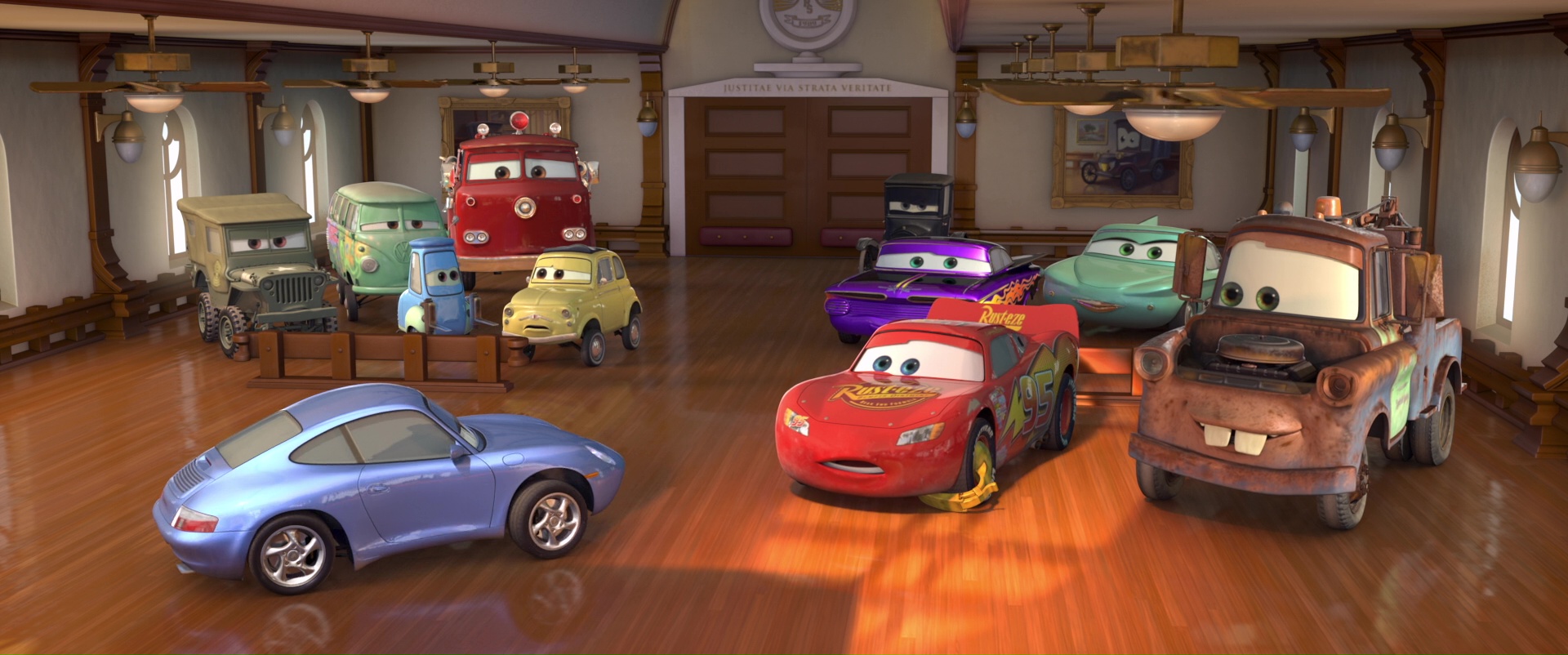 The story of Cars is set in an alternate universe where every character is a vehicle of various sorts, whether that be an automobile, an aircraft and a watercraft. The film focuses on a rookie race car named Lightning McQueen who discovers the lost town of Radiator Springs on his way to the biggest race of his life.