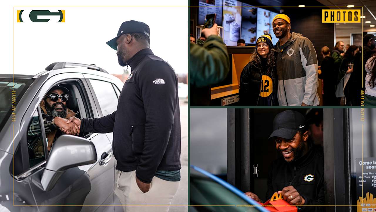 The Packers Tailgate Tour gave out gift cards and assisted customers pumping gas at Kwik Trip before heading to McDonald