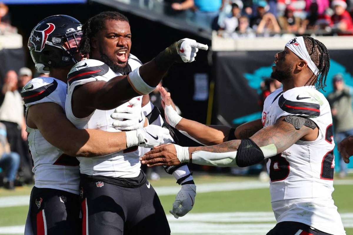 Houston Texans linebacker Azeez Al-Shaair (27) has been suspended three games for a brutal illegal hit that left Jacksonville quarterback Trevor Lawre