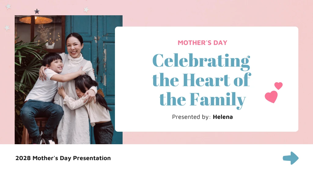 Passen Sie Ihre Muttertagspräsentation mit unserer Vorlage in zartem Pastellrosa und Blau an. Greifen Sie auf Venngage auf weitere Vorlagen für eine p