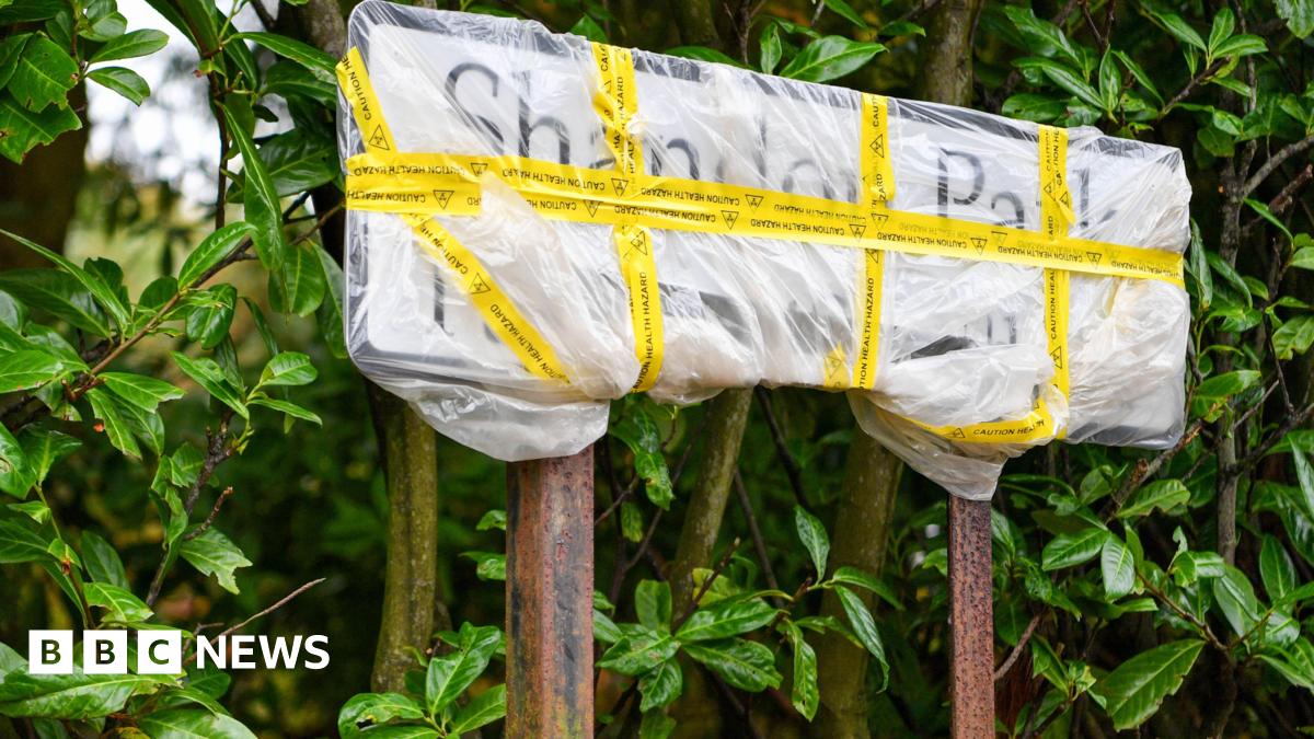 The white sign to Shandon Park was cut with an angle grinder with the Irish language removed.