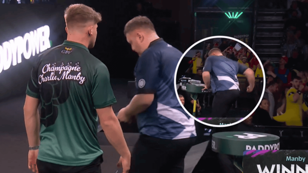 Cameron Menzies took his frustration out on the water table following his defeat to Charlie Manby.