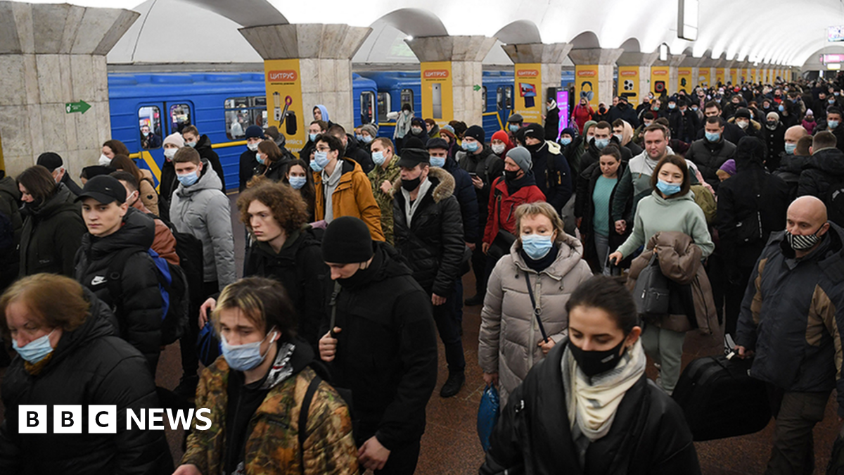 Ukraine invasion: Kyiv residents seek shelter as blasts hit - BBC News