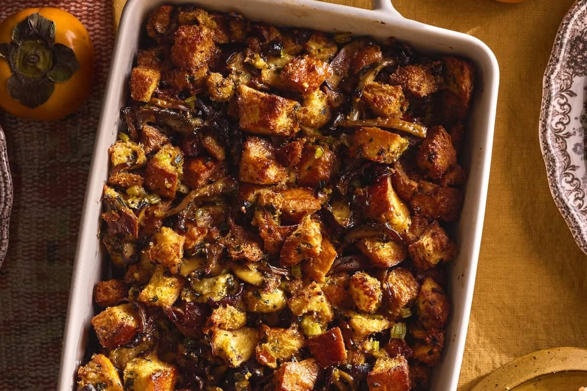 A Wild Mushroom Stuffing Recipe to end all stuffings! Quite possibly the best recipe for Thanksgiving stuffing with fresh herbs, wild mushrooms and pa