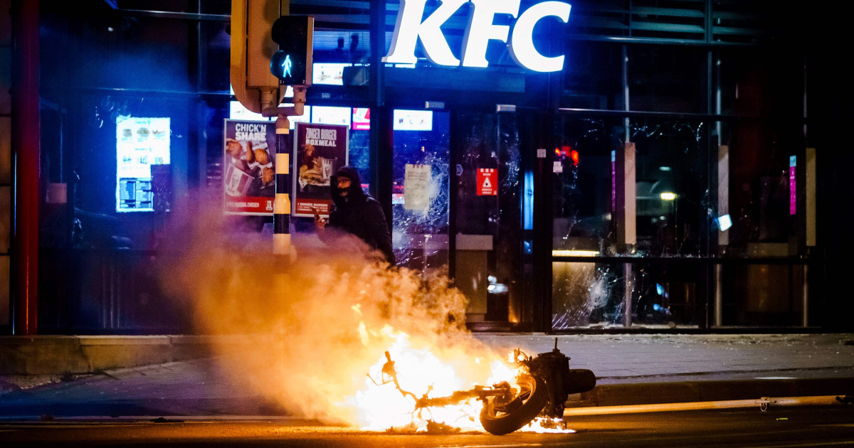 Protests against Covid-19 lockdown restrictions in the Netherlands have degenerated into vandalism.