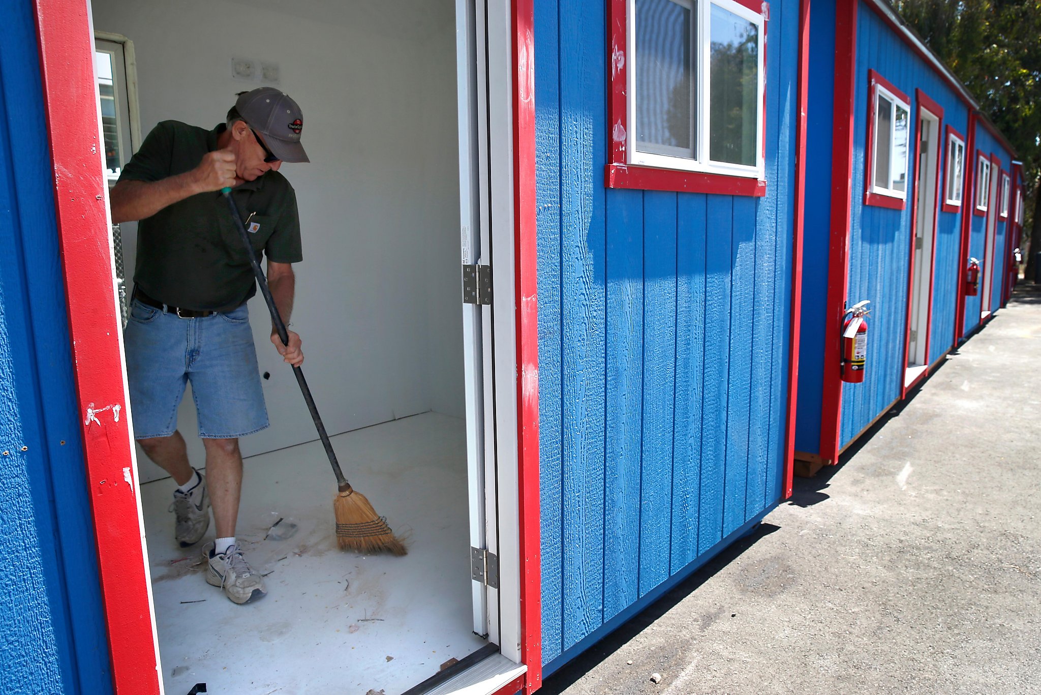 The city of Oakland opened its latest Community Cabins site Wednesday in hopes of clearing homeless encampments on the West Oakland-Emeryville border
