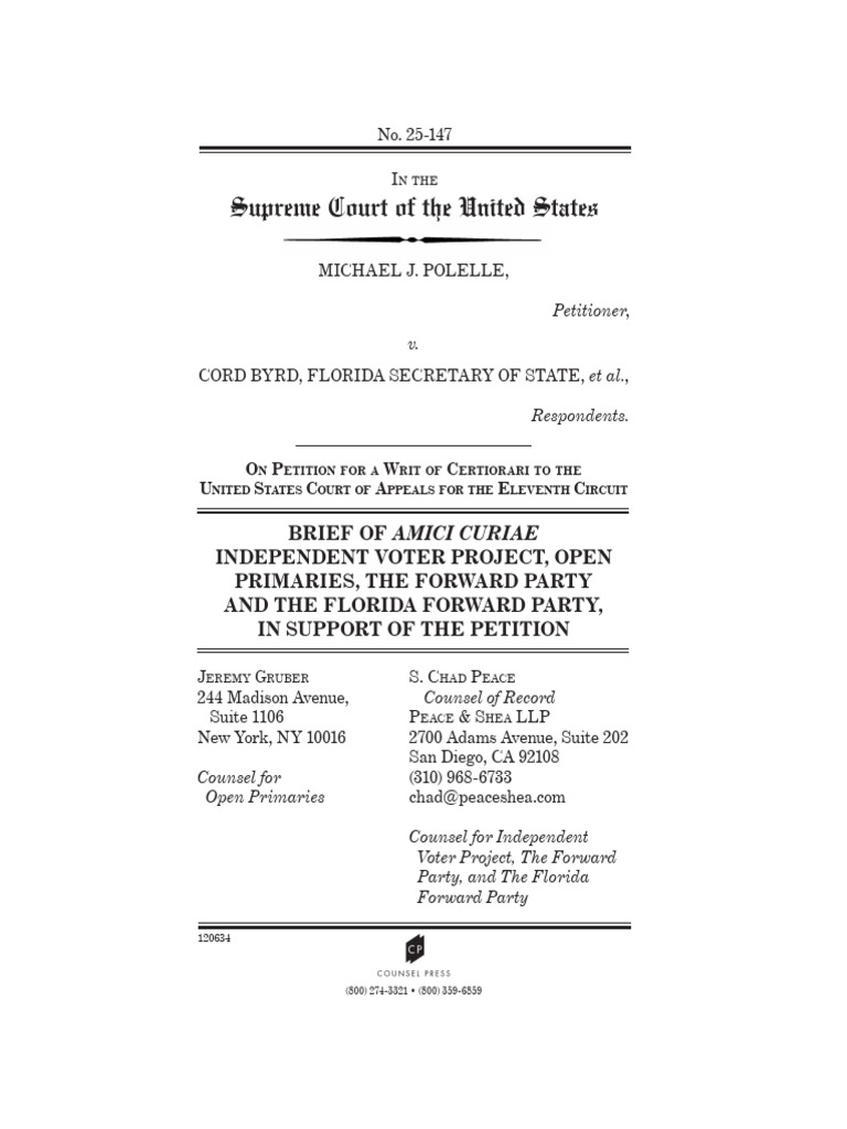IVP, Open Primaries, Forward Party Amicus in Polelle v. Fl Sec of State - Free download as PDF File (.pdf), Text File (.txt) or read online for free.