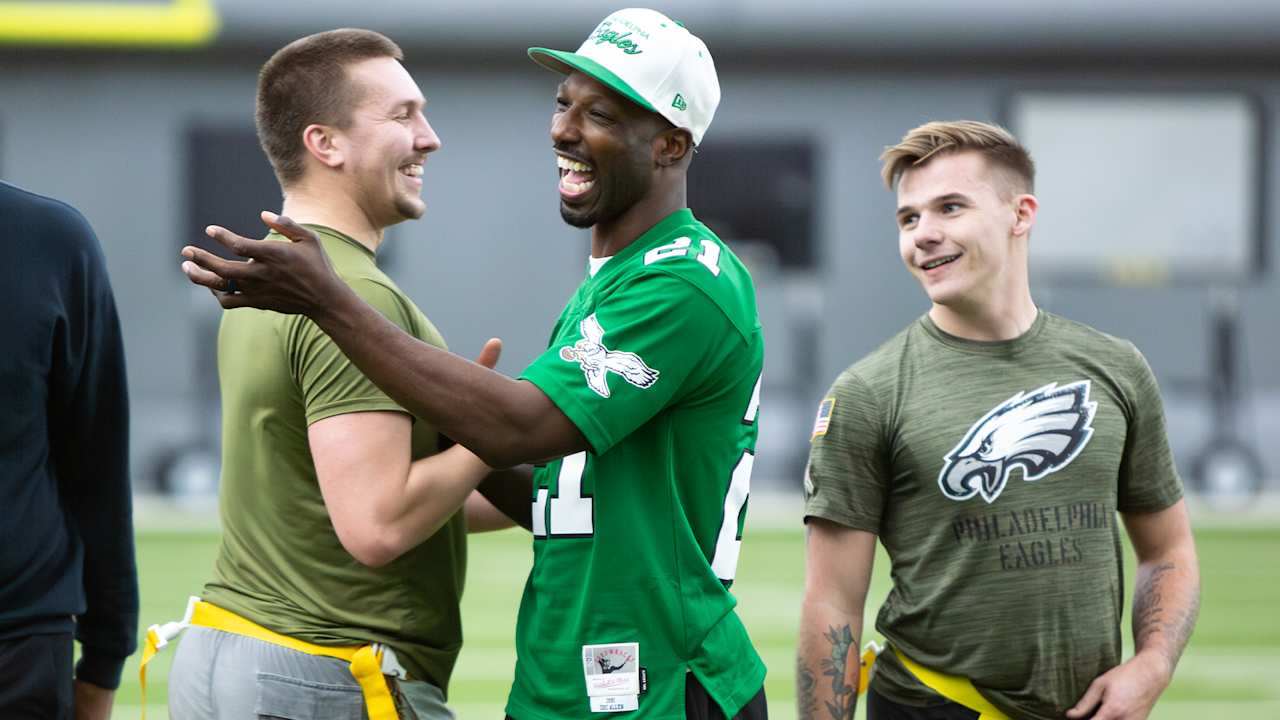 The Eagles, in partnership with Toyota, held a Salute to Service flag football game at the NovaCare Complex, where Jason Avant, William Thomas, and SW